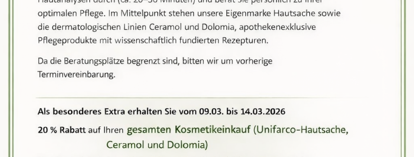 Hautberatungs Tag 9.3.26 in der Turm Apotheke 😊😊😊